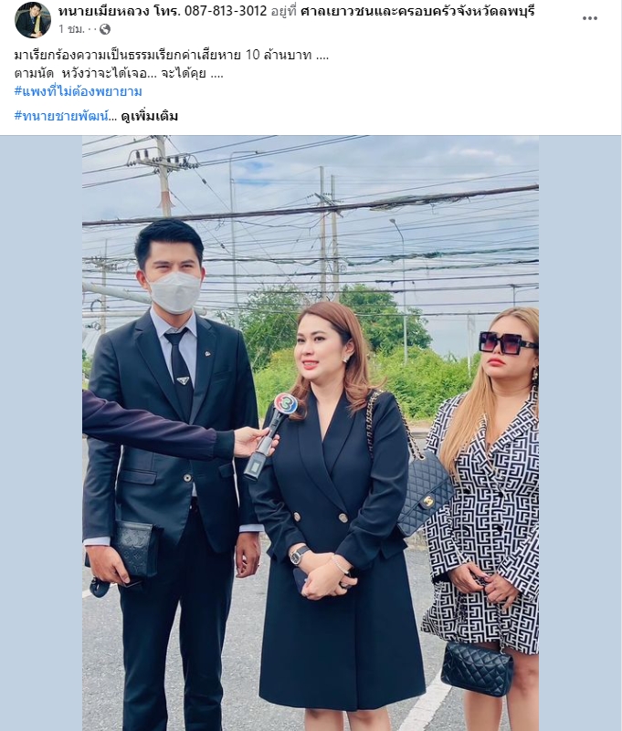 ล่าสุด วันนี้ (28 ส.ค. 2566) เวลาประมาณ 9.00 น. “จูน เพ็ญชุลี” พร้อมด้วยทนายเมียหลวง ได้เดินทางมายังศาลเยาวชนและครอบครัวจังหวัดลพบุรี โดยได้โพสต์ข้อความผ่านเฟซบุ๊กทนายเมียหลวง โทร.087-813-3012 ระบุว่า “มาเรียกร้องความเป็นธรรมเรียกค่าเสียหาย 10 ล้านบาท …. ตามนัด หวังว่าจะได้เจอ… จะได้คุย …. ”