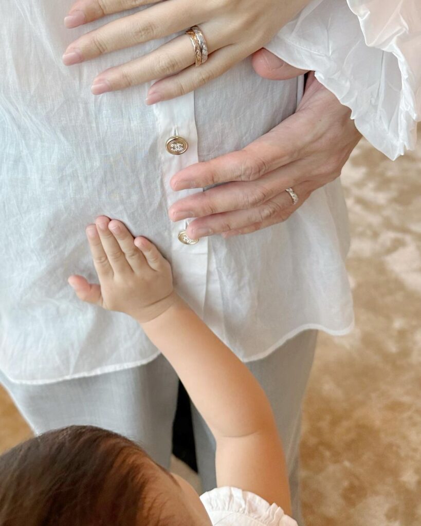 โดย “มิว นิษฐา” ได้โพสต์คลิปลูกสาว “น้องมาริน” เดินไปจุ๊บท้องน้อยๆ พร้อมแคปชั่นอิโมจิภาพครอบครัวพ่อแม่ลูก แล้วเครื่องหมายบวกเด็กน้อยเพิ่มอีกคน เป็นเด็กผู้ชาย