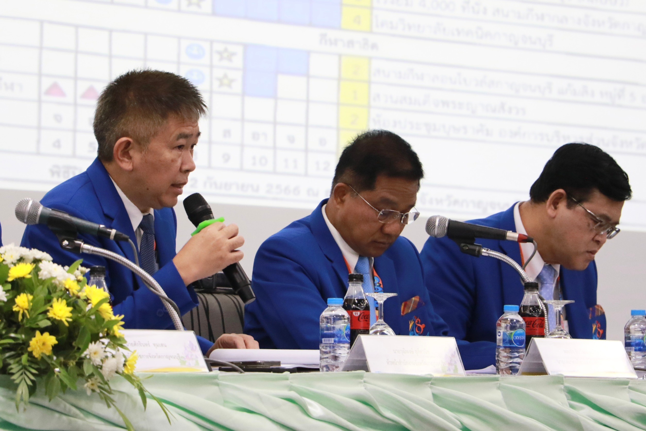 ผู้อำนวยการฝ่ายวิทยาศาสตร์การกีฬา, นายแสงชัย ต้นทัพไทย ผู้อำนวยการสำนักงานควบคุมการใช้สารต้องห้ามทางการกีฬา, พลเอก ชินวัฒน์ แม้นเดช นายกสมาคมกีฬาแห่งจังหวัดกาญจนบุรี, นายอนันท์ ดิษฐศิริ ปลัดองค์การบริหารส่วนจังหวัดกาญจนบุรี, นายวุฒิพงษ์ สุภัควนิช หัวหน้าสำนักงานจังหวัดกาญจนบุรี,คณะผู้บริหาร กกท. และผู้บริหารสมาคมกีฬาแห่งประเทศไทย ร่วมประชุม ณ ห้องประชุม CONVENTION HALL ชั้น 1 โรงแรมราชศุภมิตร (RS HOTEL)