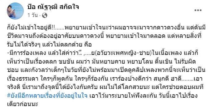 ผมไม่ได้โลกสวย! “ป๋อ ณัฐวุฒิ”โพสต์เดือด”เพลงคนจนมีสิทธิ์ไหมค่ะ”เผยหยาบคาย หวั่นเด็กๆจะมองเป็นเรื่องปกติ