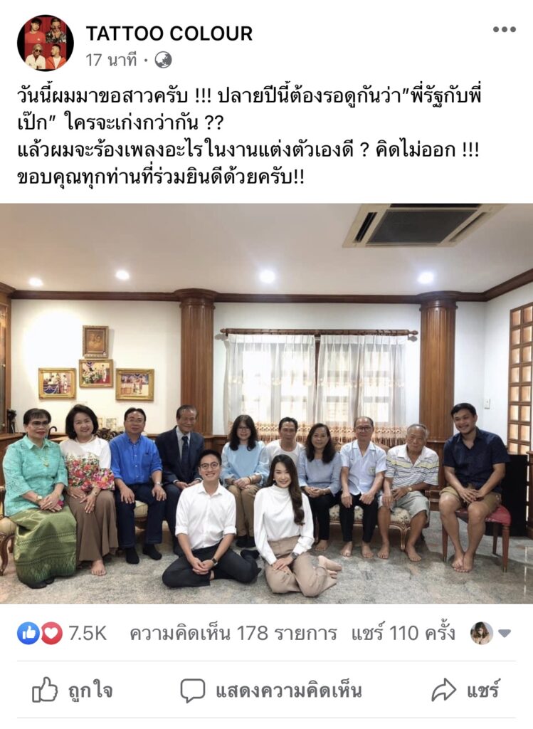 ชื่นมื่น! ดิม Tattoo Colour เตรียมสละโสด พาพ่อ แม่ สู่ขอแฟนสาวนอกวงการแล้ว เพื่อนในวงการ แฟนคลับ ร่วมแสดงความยินดี