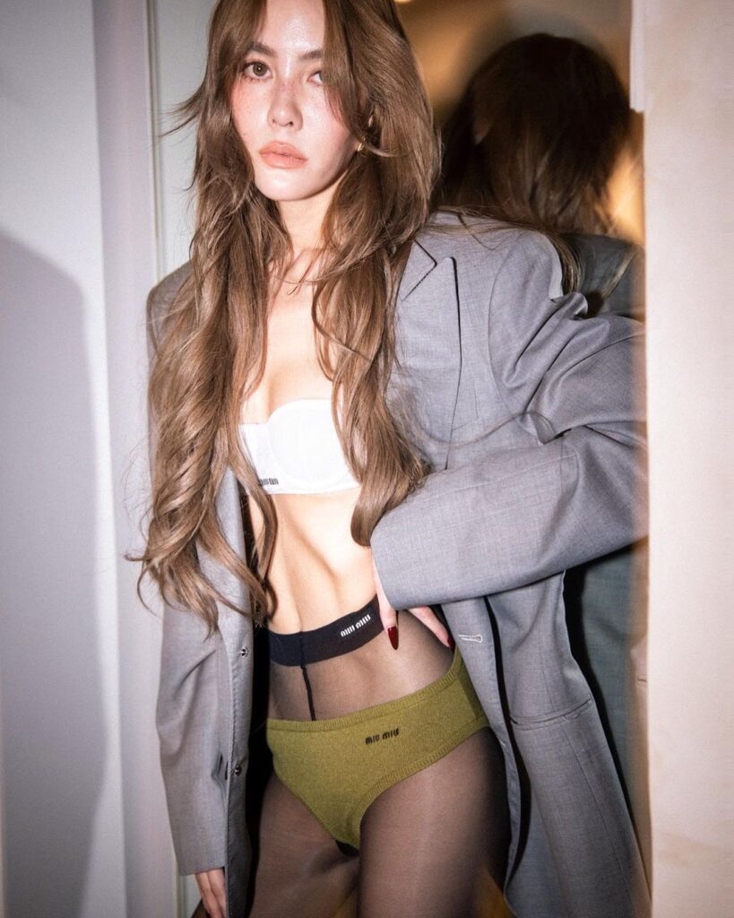 “ก็ 42 กะรัต มันเป็นคอนเซ็ปต์ ก็คือใส่เสื้อสูท ก็ใส่เสื้อสูทแล้วไง ไม่ผิดนิ แล้วมันเป็นบ้าน ก็มันมีแค่เรา เราก็ซูมตัวเองเหมือนกัน บอกเลยว่าถ้าไม่อายุเท่านี้ ถ้าอายุ 20 เจนก็คงแบบเอ๊ะยังไงดีนะ ตอนนี้ก็ยังเขิน แต่วันนั้นมีแต่เพื่อน จริงๆ เจนเป็นคนไม่ทำคอนเทนต์พวกนี้เลยนะ เป็นคนอยู่เงียบๆ แต่รุ่นน้องบิวต์ พี่เจนทำเถอะ เราก็ใจง่ายไง ก็ถามเขานะ พี่อายุเยอะแล้วนะ พี่ทำได้เหรอ เขาก็บอกพี่เจน แรงเงานะพี่เจน มุนินนะ เจนก็บอกว่ามันเป็น 10 ปีมาแล้ว น้องก็บอกเจนทำได้ เจนอยากจะเก็บภาพของเจนในทุกๆ ปี เมมโมรี่ ในแต่ละปีของเราเป็นยังไงบ้าง ในแต่ละวัย ผิวแบบนี้ หุ่นแบบนี้ เราดูแลตัวเองมาแบบนี้นะ