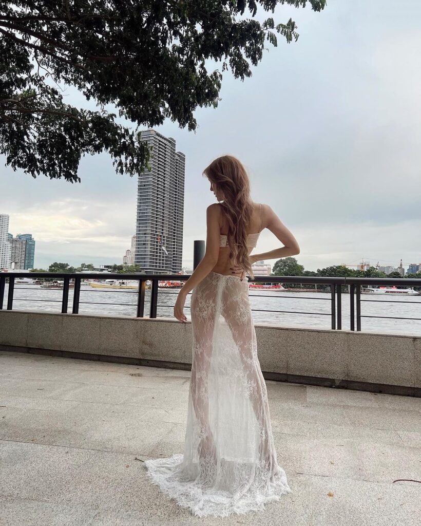 “ก็ 42 กะรัต มันเป็นคอนเซ็ปต์ ก็คือใส่เสื้อสูท ก็ใส่เสื้อสูทแล้วไง ไม่ผิดนิ แล้วมันเป็นบ้าน ก็มันมีแค่เรา เราก็ซูมตัวเองเหมือนกัน บอกเลยว่าถ้าไม่อายุเท่านี้ ถ้าอายุ 20 เจนก็คงแบบเอ๊ะยังไงดีนะ ตอนนี้ก็ยังเขิน แต่วันนั้นมีแต่เพื่อน จริงๆ เจนเป็นคนไม่ทำคอนเทนต์พวกนี้เลยนะ เป็นคนอยู่เงียบๆ แต่รุ่นน้องบิวต์ พี่เจนทำเถอะ เราก็ใจง่ายไง ก็ถามเขานะ พี่อายุเยอะแล้วนะ พี่ทำได้เหรอ เขาก็บอกพี่เจน แรงเงานะพี่เจน มุนินนะ เจนก็บอกว่ามันเป็น 10 ปีมาแล้ว น้องก็บอกเจนทำได้ เจนอยากจะเก็บภาพของเจนในทุกๆ ปี เมมโมรี่ ในแต่ละปีของเราเป็นยังไงบ้าง ในแต่ละวัย ผิวแบบนี้ หุ่นแบบนี้ เราดูแลตัวเองมาแบบนี้นะ