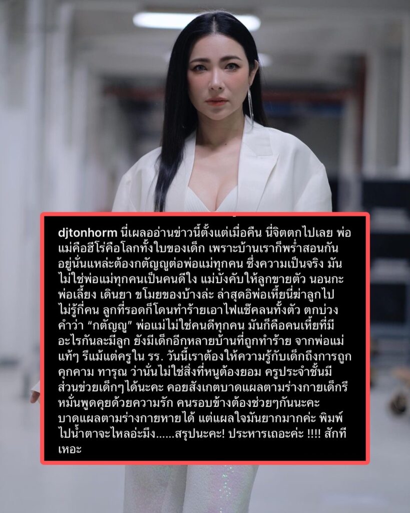 เรียกว่าเป็นข่าวที่ฟังแล้วสะเทือนใจหัวอกคนเป็นพ่อเป็นแม่ และประชาชนไม่น้อยเลยทีเดียว จากกรณีพ่อแม่ที่ทำร้ายร่างกายลูกๆ ก่อนจะสารภาพอีกว่า ฆ่าลูกวัย2ขวบโบกปูนไปไม่นานมานี้ ล่าสุด “ดีเจต้นหอม ศกุนตลา” คุณแม่อารมณ์ดี ก็ได้ออกมาแสดงความคิดเห็นกับข่าวดังกล่าว บอกเลยว่าพิมพ์ไปน้ำตาไหลไปเลยทีเดียว