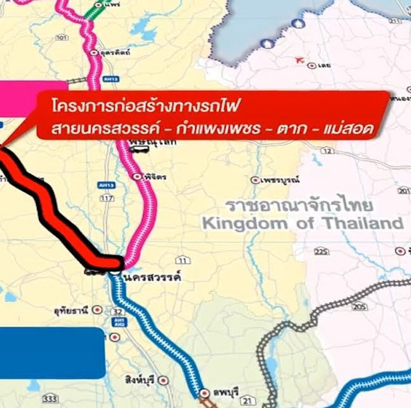 เมื่อช่วงปี 2563 ที่ผ่านมา คณะกรรมการการรถไฟแห่งประเทศไทย หรือ บอร์ดรถไฟ ได้เคาะ งบประมาณ 168 ล้าน เพื่อศึกษารายละเอียดเวนคืน EIA ก่อสร้างทางคู่สายใหม่ “แม่สอด-ตาก-กำแพงเพชร-นครสวรรค์” ระยะทาง 256 กม. ด้วยเงินลงลงทุนงบประมาณ 96,000 ล้านบาท (9.6 หมื่นล้านบาท) โดย เชื่อมเส้นทางระเบียงเศรษฐกิจสายตะวันออก-ตะวันตก (East-West Economic Corridor: EWEC) สนับสนุนการค้า ท่องเที่ยว