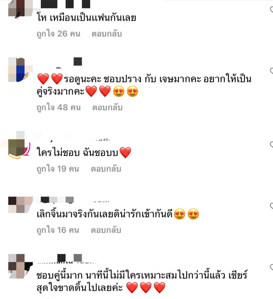 ล่าสุดทำเอาแฟนคลับฟินหนัก เมื่อสาว”ปราง”ออกมาโพสต์ภาพคู่”เจษ”เพื่อโปรโมทละครที่เล่นด้วยกัน เป็นภาพสุดน่ารัก แนบชิด ออกแนวฟิวแฟน ถึงแม้ก่อนหน้านี้ทั้งคู่จะมีดราม่าก็ตาม พอชาวเน็ตเห็นภาพนี้ก็อดใจไม่ไหว รีบเข้ามาคอมเมนต์เชียร์ให้หนุ่มเจษกับสาวปรางเป็นคู่จริงสักทีเพราะเคมีเข้ากันสุดๆ