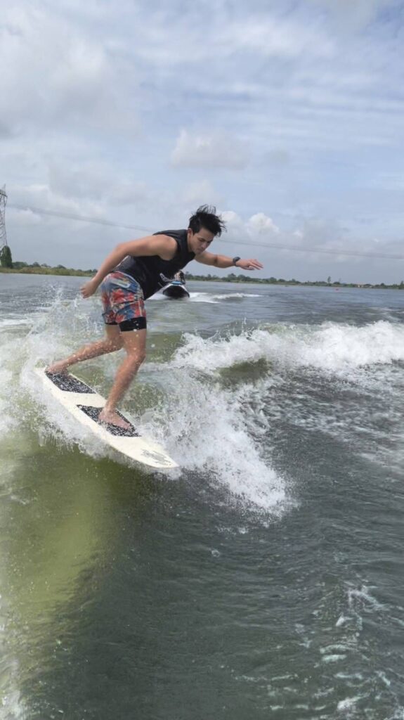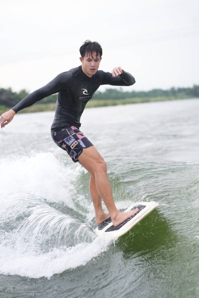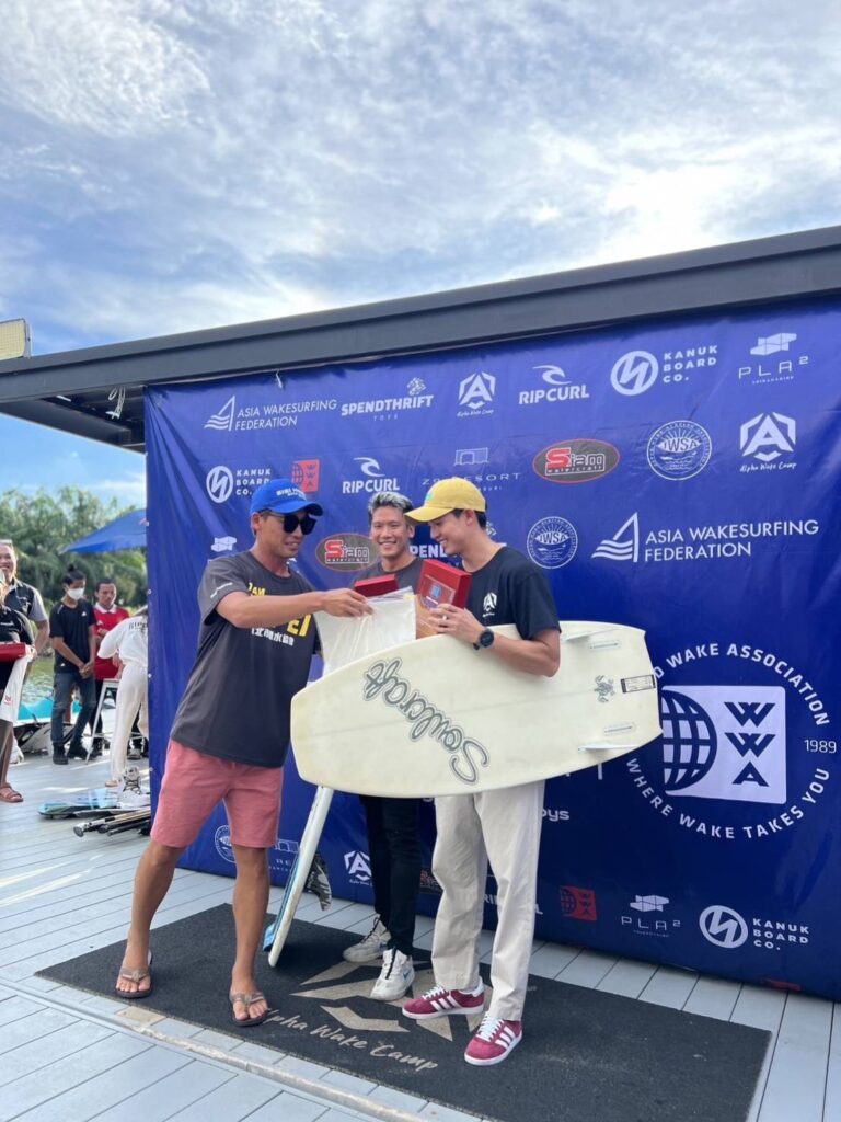 ทั้งนี้ในงานเดียวกันนี้ นักแสดงหนุ่มผู้มีใจรักใน กีฬาเวคเซิร์ฟ อย่าง “แชมป์ ชนาธิป” ยังตบเท้าเข้าร่วมการแข่งขัน โดยแชมป์ลงแข่ง wakesurf ในรุ่น beginner men surf ได้อันดับที่ 2 แข่งกับผู้เข้าแข่งขันจากประเทศไทย และทีมจากไต้หวัน ทั้งนี้แชมป์เปิดใจว่า