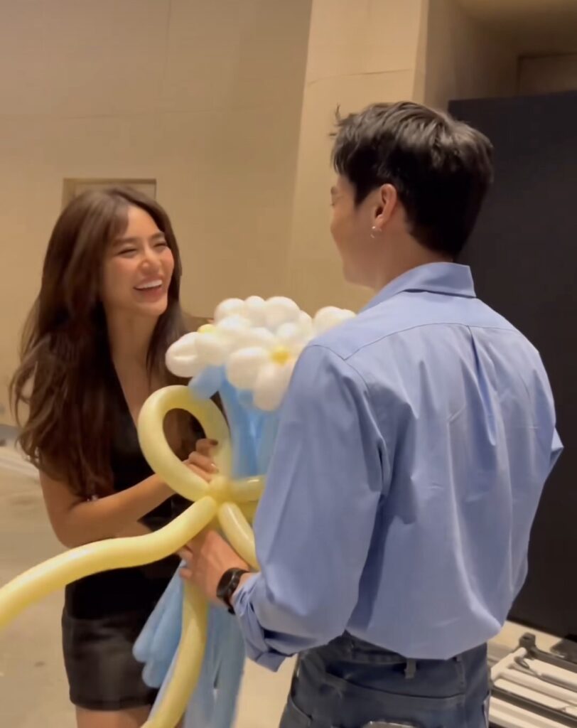 โดยหอบลูกโป่งดอกไม้สีสันสดสดให้เธอ อีกทั้งยังถ่ายรูปคู่ยิ้มหวาน หัวเราะน่ารักหยอกกันเล่นฟีลแฟนสุดๆ เป็นโมเมนต์ชวนเชินอีกหนึ่งกรุบ งานนี้ทำเอาแฟนๆ ถึงกับยิ้มกันแก้มปริ หยุดจิ้นคู่นี้ไม่ได้แล้ว แถมยังแซวว่าน่ารักจังลงเรือสักที