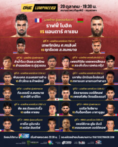 ติดตามชม “ก้องธรณี vs ทาอิกิ” ศึก ONE ลุมพินี 37 ถ่ายทอดสดจากสนามมวยเวทีลุมพินี (รามอินทรา) วันศุกร์ที่ 20 ต.ค.นี้ คู่แรกเริ่มเวลา 19.30 น. ถ่ายทอดสดทางช่อง 7HD เริ่ม 20.30 น. เป็นต้นไป