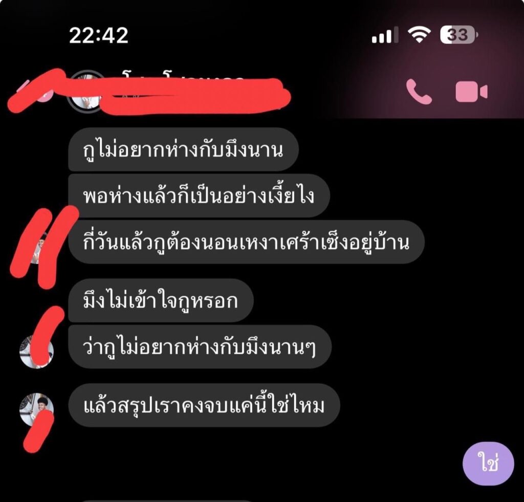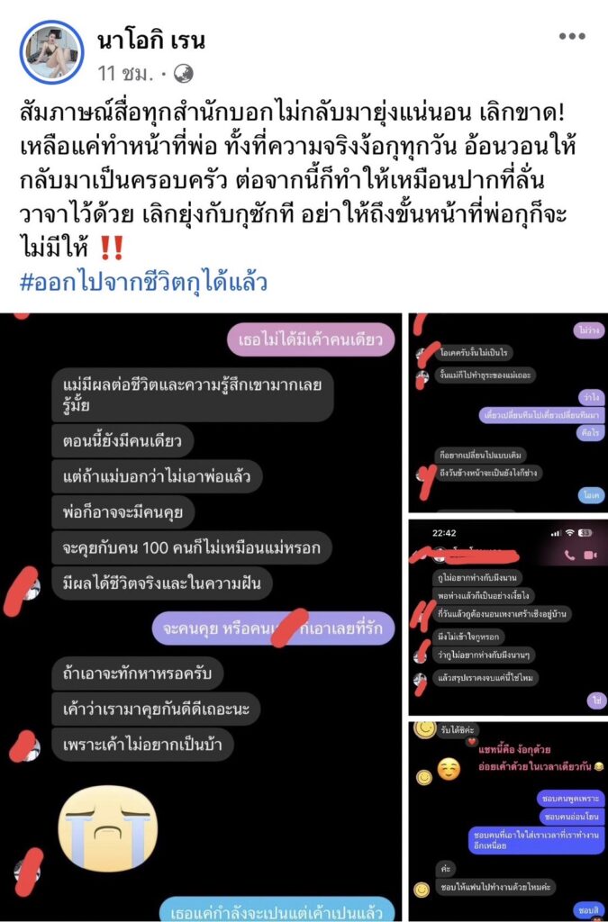 ล่าสุดเดือดอีกแล้ว โดยทาง”นัส”ได้ออกมาโพสต์แชทที่อดีตสามีตามง้อ พร้อมแคปชั่นว่า”สัมภาษณ์สื่อทุกสำนักบอกไม่กลับมายุ่งแน่นอน เลิกขาด! เหลือแค่ทำหน้าที่พ่อ ทั้งที่ความจริงง้อกุทุกวัน อ้อนวอนให้กลับมาเป็นครอบครัว ต่อจากนี้ก็ทำให้เหมือนปากที่ลั่นวาจาไว้ด้วย เลิกยุ่งกับกุซักที อย่าให้ถึงขั้นหน้าที่พ่อกุก็จะไม่มีให้ ‼️#ออกไปจากชีวิตกุได้”