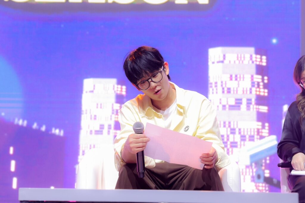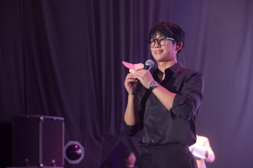 “ คลิปเมื่อกี้ประทับใจมากๆเลยครับ พลังงานและกำลังใจที่ทุกคนให้ผมในวันนี้ ผมจะเก็บกลับไปเพื่อพัฒนาการเป็นนักแสดงที่ดี ผมมีคำพูดสองคำที่อยากจะบอกแฟนๆมากๆคนเราทุกคนใช้ชีวิตไปก็ต้องเจอเรื่องลำบาก ทั้งตัวผมเองและทุกคนที่อยู่ที่นี่ก็น่าจะต้องเจอกับเรื่องนี้เหมือนกัน แต่มันจะไม่ได้อยู่กับเราตลอดไปนะครับมันจะผ่านไปเราจะสู้ไปด้วยกันนะครับ ขอบคุณครับ รักที่สุด ”