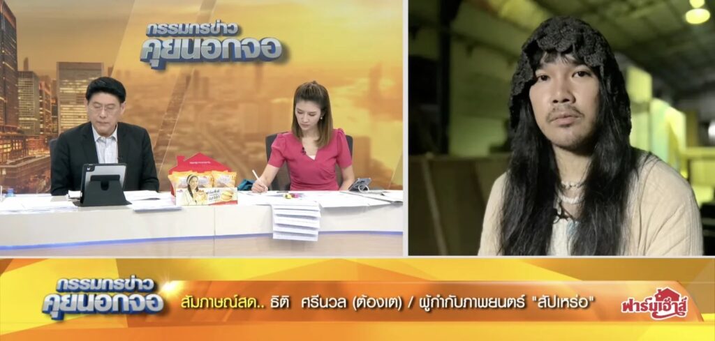 ต่อมาทางด้าน”สรยุทธ”ซึ่งเป็นพิธีกรของรายการ กรรมกรข่าว คุยนอกจอ ได้โฟนอินไปหา”ต้องเต”เพื่อถามถึงดราม่าที่เกิดขึ้น ด้าน “ต้องเต” ได้เปิดใจว่า “ความรู้สึกของตนไม่อยากให้มันเกิดดรามารุนแรงขนาดนั้น สำหรับเรื่องหนังสัปเหร่อมันไม่ทันแล้วคืออยู่ในปลายทางของหนัง ตนก็เลยพูดโดยที่ไม่รู้ระบบ และไม่เข้าใจระบบการดำเนินการในส่วนของภาครัฐ ตนอาจจะใจร้อนด้วย แต่สิ่งที่อยากจะสื่อจริงๆ คืออยากเป็นกระบอกเสียงในการขับเคลื่อน ต้องเข้าใจว่ากระแสหนัง มันแป๊บเดียว แล้วมันก็จะหายไปเลย ถ้าไม่มีระบบมารับรองทัน อาจจะเสียโอกาสในการผลักดัน อยากจะสะท้อนว่า ถ้าอยากซัพพอร์ตหรือสนับสนุน จริงๆ ถ้าในวงการอุตสาหกรรมหนังมันก็ค่อนข้างจะมีกระแสแป๊บเดียว ถ้าเราช้านิดนึงในเรื่องต่อๆ ไป มันอาจจะผลักดันไม่ทัน ซึ่งก่อนหน้านี้ไม่รู้จริงๆว่าซอฟต์พาวเวอร์มันคืออะไร หลังๆ ก็ไม่เข้าใจด้วยว่า ความรู้ที่เกี่ยวกับซอฟต์พาวเวอร์ของเรามันถูกหรือเปล่า”