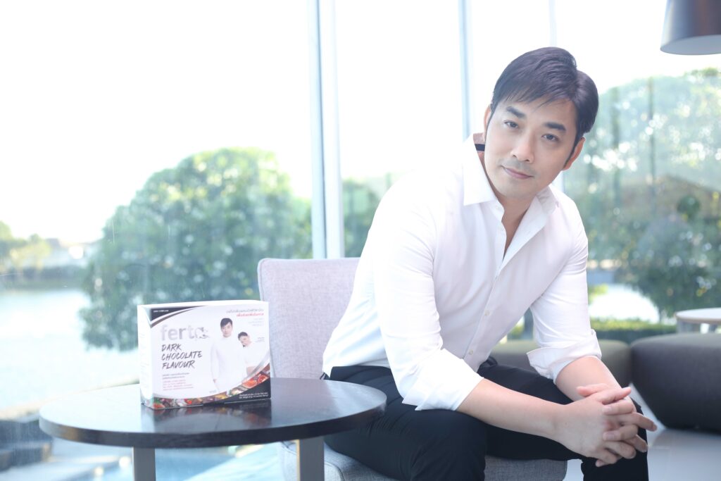 เจมส์ : การที่มีบุตรยากก็เป็นโอกาสที่ดีอย่างหนึ่ง ทำให้เราได้หันมาดูแลตัวเอง การมีบุตรยากต้องไปตรวจก่อนว่าสาเหตุของผู้ชายเกิดจากอะไร ปริมาณของสเปิร์ม คุณภาพของสเปิร์ม หรือ การวิ่งว่ายของสเปิร์ม ถ้าหากว่ามันเป็นสิ่งที่เกิดจากอาหาร หรือ ว่าการดูแลตัวเอง เราก็ถือโอกาสนี้เป็นโอกาสที่ดีได้หันมาดูแลสุขภาพตัวเอง เช่น การนอนพักผ่อนให้เป็นเวลา เครียดให้น้อยลง การออกกำลังกาย การรับประทานอาหารที่ถูกต้องตามหลักโภชนาการ โดยเฉพาะผู้ชายที่ต้องบำรุงสเปิร์ม ก็ต้องรับประทานพวกสารอาหารต่างๆที่มี ไลโคปีน ซิงค์ วิตามินต่างๆ ที่เกี่ยวข้องกับคุณภาพของสเปิร์ม ส่วนเคล็ดลับของเจมส์ นั้น ผมจะเน้นดื่ม ผลิตภัณฑ์เสริมอาหาร เฟอร์ต้า (Ferta) เวย์โปรตีนผสมมัลติวิตามินบำรุงสุภาพบุรุษ รสดาร์กช็อกโกแลต เป็นเวย์โปรตีนเจ้าแรก และเจ้าเดียวที่ถูกออกแบบมาเพื่อผู้ชายที่ต้องการดูแลสุขภาพก่อนเตรียมตัวมีบุตรและผู้ชายที่มีบุตรยากได้บำรุงพร้อมๆกันทั้งร่างกาย และกล้ามเนื้อจบในซองเดียว ไม่ต้องยุ่งยากหาวิตามินทานหลายๆเม็ด เฟอร์ต้า (Ferta) มีส่วนผสมของมัลติวิตามิน และสารสกัดบำรุงสเปิร์มกว่า 30 ชนิด อาทิ เช่น ถั่งเช่า โสม เห็ดหลินจือ กระชายดำ สารสกัดจากหอยนางรม ไลโคปีนจากมะเขือเทศ ซิงค์ และ คิวเทน ไม่มีส่วนผสมของน้ำตาล และที่สำคัญชงง่าย พกพาง่าย เพียงฉีกซองและใส่แก้วเชคผสมกับน้ำเปล่าวันละ 2 ซอง ก่อนไปเก็บเชื้อเป็นเวลา 3 เดือน และสามารถทานต่อได้ยาวเพื่อบำรุงร่างกาย