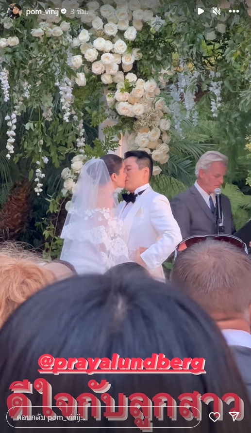 โดย “ป้อม วินิจ” ช่างแต่งหน้าชื่อดัง ได้เผยภาพและคลิปสุดหวานลงอินสตาแกรมส่วนตัว หลังจากได้บินตรงไปร่วมเป็นสักขีพยานรักในครั้งนี้ด้วย ท่ามกลางบรรยากาศที่ชื่นมื่นอบอุ่นโดยมีคนในครอบครัวและเพื่อนสนิทรวมถึงนางเอกสาว “ชมพู่ อารยา เอ.ฮาร์เก็ต” ก็ไปร่วมแสดงความยินดีกับเจ้าสาวป้ายแดงด้วยเช่นกัน