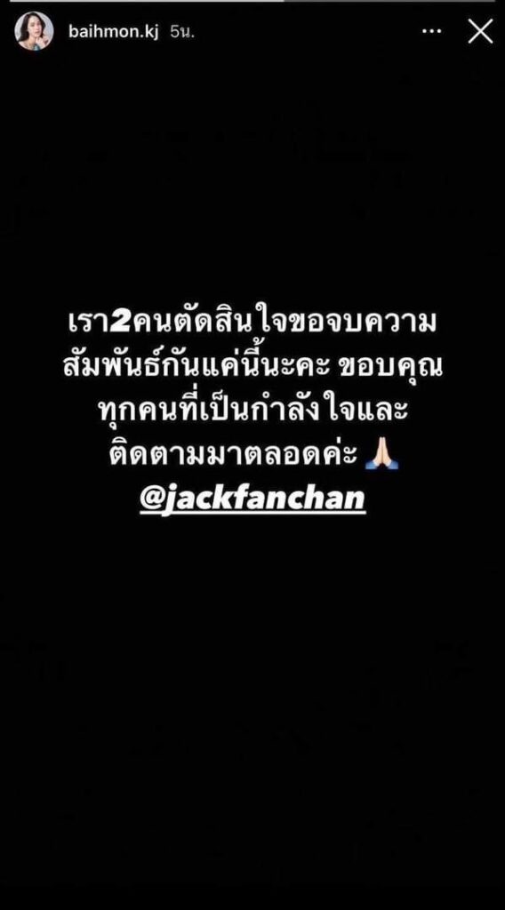 เรียกว่าทำเอาชาวเน็ตหลายคนตามอารมณ์กันแทบไม่ทัน เมื่อจู่ๆ นักแสดงสาว”ใบหม่อน กิตติยา”ออกมาโพสต์เลิกกับหวานใจหนุ่ม”แจ็ค เฉลิมพล หรือ แจ็ค แฟนฉัน” บนลงไอจีสตอรี่ ก่อนจะลบทิ้ง แต่ว่าผ่านไปได้ไม่นาน สาว”ใบหม่อน” ก็ได้ออกมาประกาศอีกว่าคืนดีกันแล้ว พร้อมขอโทษทุกคนที่ใจร้อน ท่ามกลางเพื่อนพ้องในวงการและชาวเน็ตเข้ามาร่วมยินดีกับทั้งคู่มากมาย