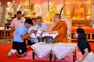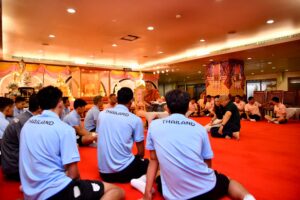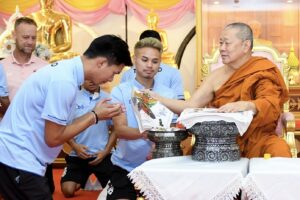 นักเตะและสตาฟฟ์โค้ชทีมชาติไทย เดินทางไป กราบนมัสการ เจ้าคุณธงชัย เอาฤกษ์เอาชัยก่อนคัดบอลโลก