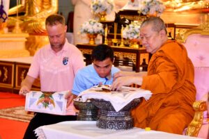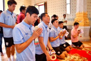 เอาฤกษ์เอาชัย ! ”ช้างศึก”กราบนมัสการ ”สมเด็จธงชัย” ก่อนคัดบอลโลก