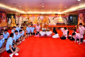 โดยการเข้านมัสการเจ้าคุณธงชัย ในครั้งนี้นำโดย นวลพรรณ ล่ำซำ ผู้จัดการทีมชาติไทย, มาโน โพลกิง เฮดโค้ช พร้อมด้วย นักเตะทีมชาติไทย อาทิเช่น ชนาธิป สรงกระสินธ์ ,ธีราทร บุญมาทัน ,ธีรศิลป์ แดงดา ,สารัช อยู่เย็น และทีมงานสตาฟฟ์โค้ช