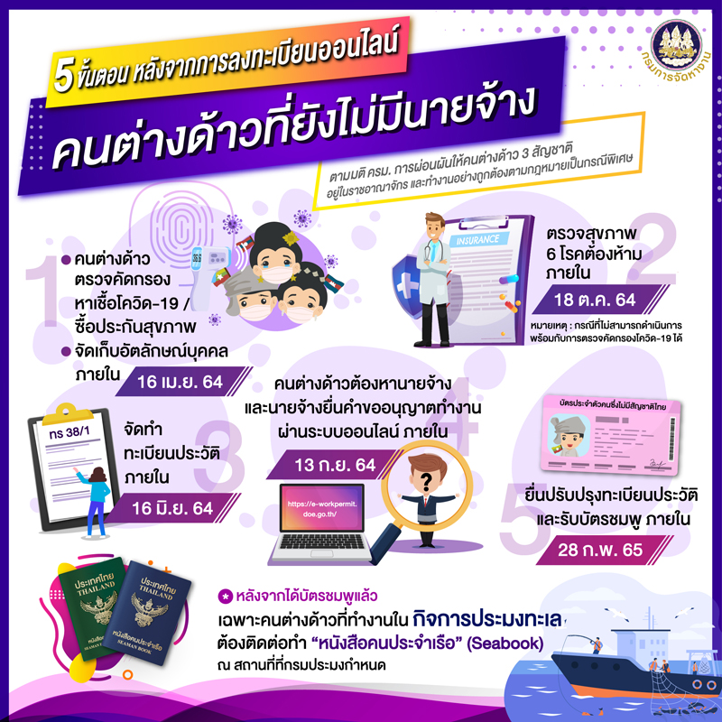 ด้านนายสุชาติ พรชัยวิเศษกุล อธิบดีกรมการจัดหางาน กล่าวว่า ในส่วนการตรวจโรคต้องห้ามหากมีเหตุให้ดำเนินการไม่ทัน ภายในวันที่ 16 เมษายน 2564 ให้ไปดำเนินการให้แล้วเสร็จ ไม่เกินวันที่ 18 ตุลาคม 2564