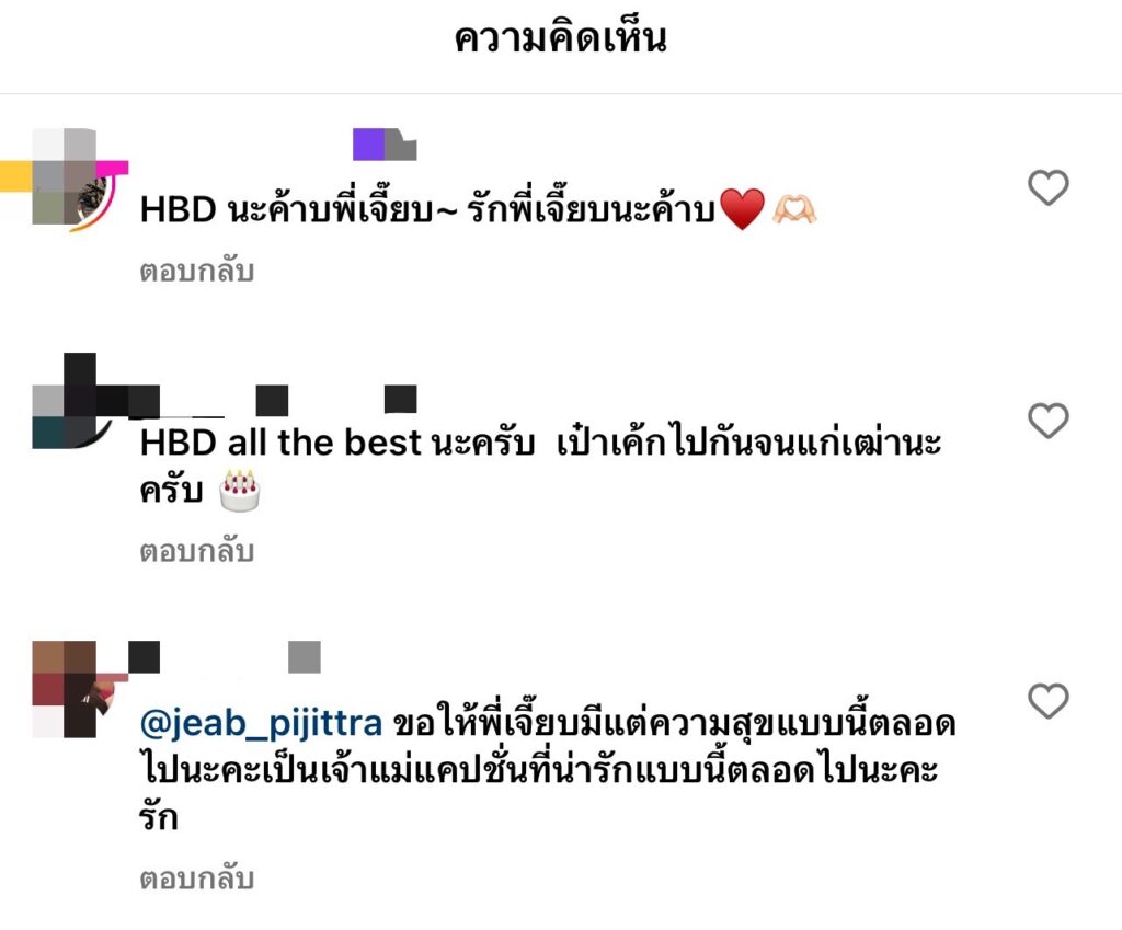 ความหวานไม่แผ่วแม้จะอวยพรกันมายาวนานกว่า 18 ปีแล้วแต่ความหวานพุ่งปรี๊ดขึ้นทุกปีแล้ว งานนี้เหล่าเพื่อนพ้องในวงการ รวมไปถึงแฟนๆ ต่างก็เข้ามาคอมเมนต์อวยพร เจี๊ยบ พิจิตตรา กันอย่างคับคั่งเช่นเดียวกัน