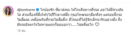 “โกน้องรัก พี่มาส่งนะ ให้โกเดินทางดี ๆ นะ อย่าได้มีห่วงอันใด ส่วนเรื่องที่มึงให้กูไปรีวิวคาเฟ่มึง กูขอโทษนะกูลืมจริง ๆ แต่รอบนี้กูจะไม่ลืมละ เหมือนกับที่กูจะไม่ลืมมึง! ดีใจนะที่ได้รู้จักเด็กน่ารักอย่างมึง ถึงมันจะยังตกใจไม่หายแต่กูก็ขอบอกว่า……โชคดีนะโก”