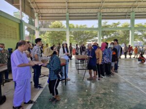 โดยในช่วงเช้า ได้มีการแจกทาน เป็นข้าวสาร 2500 ถุง และมอบเงินอีกกว่า 6 แสนบาท ให้กับชาวบ้านและคนพิการ กว่า 2000 คน รวมทั้งถวายเงินทอดกฐินกว่า 250,000 บาท