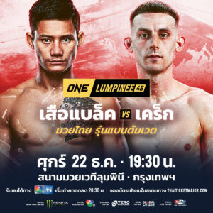 “เสือแบล็ค ท.พราน 49” มวยซ้ายทรงพลัง วัย 27 ปี ชาวกะเหรี่ยงป่าเด็ง จากเพชรบุรี สร้างชื่อเป็นขวัญใจแฟนกีฬาต่อสู้ทั่วโลกอย่างรวดเร็ว ด้วยผลงานเก็บชัยชนะและโบนัสได้ 3 ไฟต์ติด พร้อมเดินลุยรับหน้าใหม่ “เคร็ก โคกลีย์” มวยบ้าดีเดือด วัย 30 ปี จากไอร์แลนด์ ที่มีดีกรีแชมป์ Road to ONE UK การันตีฝีมือ เตรียมดวลฝีมือกันภายใต้กติกามวยไทย รุ่นแบนตัมเวต (135 – 145 ป.) ในศึกใหญ่ส่งท้ายปี ONE ลุมพินี 46 วันศุกร์ที่ 22 ธ.ค.นี้ ถ่ายทอดสดจากสนามมวยเวทีลุมพินี (รามอินทรา) เริ่มคู่แรก 19.30 น.