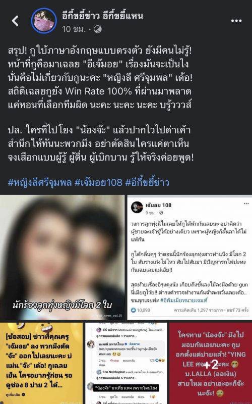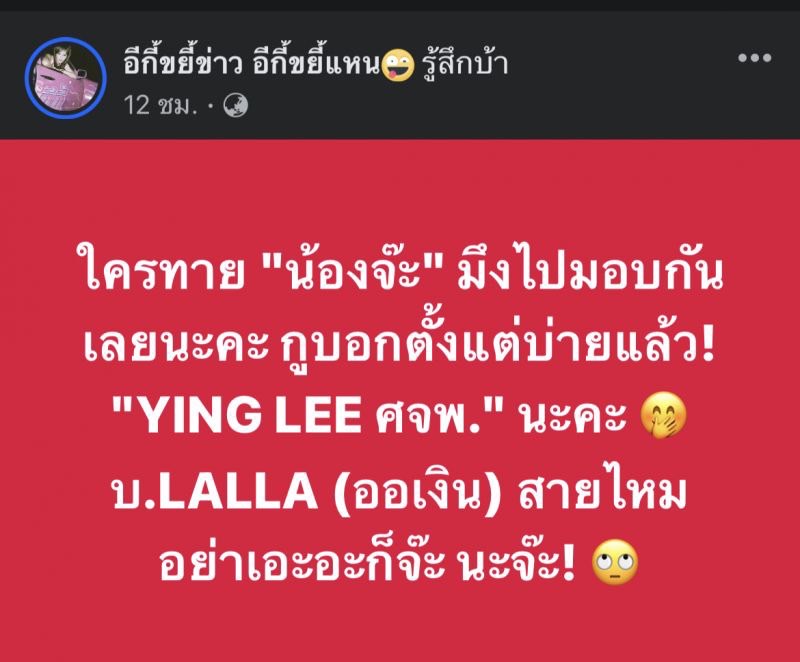 ปล. ใครที่ไปโยง “น้องจ๊ะ” แล้วปากไวไปด่าเค้า สำนึกให้ทันนะพวกมึง อย่าตัดสินใครแค่ตาเห็น จงเสือกแบบผู้รู้ ผู้ตื่น ผู้เบิกบาน รู้ให้จริงค่อยพูด!#หญิงลีศรีจุมพล #เจ๊มอย108 #อีกี้ขยี้ข่าว”