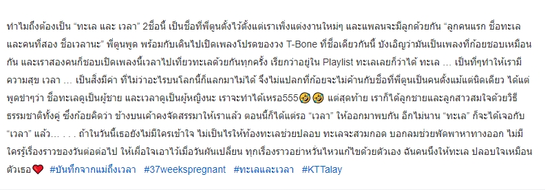 ถ้าในวันนี้เธอยังไม่มีใครเข้าใจ ไม่เป็นไรให้ท้องทะเลช่วยปลอบ ทะเลจะสวมกอด บอกลมช่วยพัดพาหาทางออก ไม่มีใครรู้เรื่องราวของวันต่อต่อไป ให้เผื่อใจเอาไว้เมื่อวันผันเปลี่ยน ทุกเรื่องราวอย่าหวั่นไหวแก้ไขด้วยตัวเอง ฉันคนนึงให้ทะเล ปลอบใจเหมือนตัวเธอ #บันทึกจากแม่ถึงเวลา #37weekspregnant #ทะเลและเวลา #KTTalay”