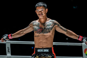 สำหรับ “ก้องธรณี” ถือเป็นดาวเด่นของเวที ONE ลุมพินี ฝากผลงานชนะไปได้ถึง 5 จาก 6 ไฟต์ ที่ได้ลงแข่งขัน และเก็บชัยได้ต่อเนื่องใน 4 ไฟต์หลังสุด แต่เจ้าตัวไม่เคยคิดหยุดพัฒนาฝีมือ โดยมีครอบครัวและแฟนมวยเป็นแรงผลักดันสำคัญที่ทำให้เขาอยากโชว์ผลงานให้ดีขึ้นเรื่อย ๆ