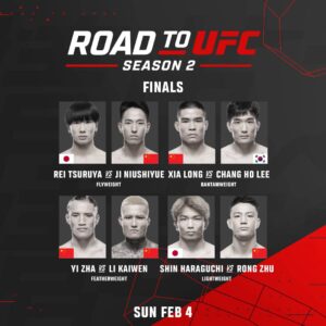 โดยรอบชิงชนะเลิศของ ROAD TO UFC SEASON 2 จะมีขึ้นในวันที่ 3 กุมภาพันธ์ 2024 หลังจบศึก UFC FIGHT NIGHT: DOLIDZE VS IMAVOV โดยมีการต่อสู้ 4 คู่ดังต่อไปนี้