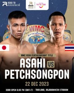 คู่ที่ 3 อาซาฮี พีเคแสนชัย แชมป์โลกมวยไทยของ WBC ชาวญี่ปุ่นจะพบกับ เพชรทรงพล บัญชาเมฆ เจ้าของเหรียญทองแดงกีฬาคิกบ็อกซิ่งชิงแชมป์เอเชีย โดยจะเป็นกติกาการชกมวยไทย 5 ยก มีเข็มขัดแชมป์ รุ่นเฟเธอร์เวตเป็นเดิมพัน