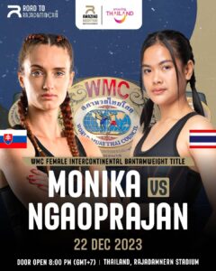 คู่ที่ 4 โมนิก้า โชชิลโควา นักชกสาวสโลวาเกีย ผู้มีดีกรีเป็นแชมป์มวยไทยยุโรป IFMA แชมป์โลกเควัน WAKO แชมป์โลก IFMA และแชมป์ Muaythai World Championship พบกับ เงาพระจันทร์ ลูกทรายกองดิน รองแชมป์ RWS รุ่นแบนตั้มเวต 2023 โดยเป็นการชกมวยไทย 5 ยก มีเข็มขัดแชมป์ รุ่นแบนตั้มเวตเป็นเดิมพัน