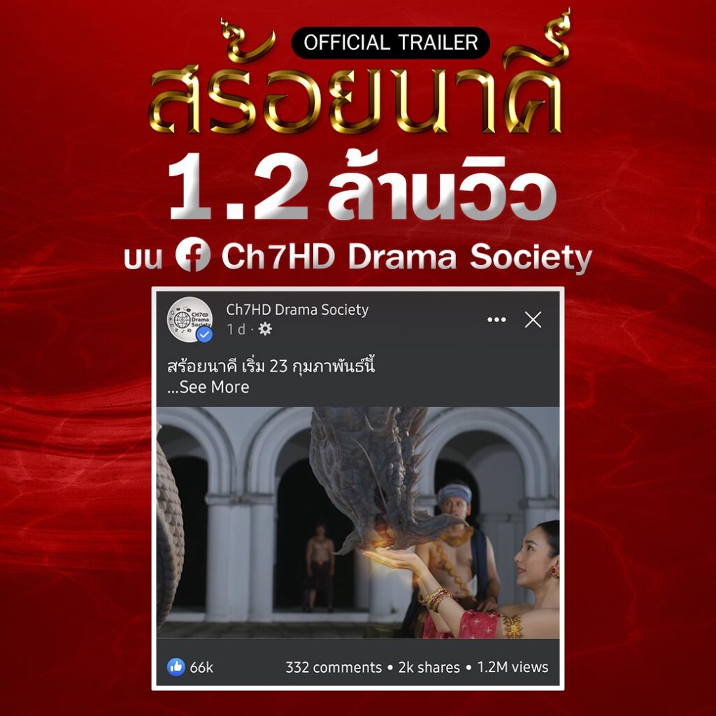 ปีนี้เรียกว่ามีละครโชว์ CG เรียกเสียงฮือฮาแฟน ๆ เพียบ เริ่มจาก สร้อยนาคี ผลงานจากค่าย มุมใหม่ นอกจากความเข้มข้นของเนื้อเรื่องที่ครบรส ยังเพิ่มอรรถรสเรื่องเอฟเฟกต์ตระการตา คอมพิวเตอร์กราฟิกแบบสมจริง เพื่อแฟนละครแบบเต็มอิ่ม นำแสดงโดยนางเอกมากฝีมือ นาว-ทิสานาฏ ในบทนางพญานาคี ผู้ยึดมั่นในความรัก ซึ่งได้รับกระแสตอบรับจากแฟนละครสุดแรงตั้งแต่ยิงทีเซอร์แรก มียอดชมบน Facebook : Ch7HD Drama Society ทะลุ 1.2 ล้านวิว ใน 48 ชั่วโมง