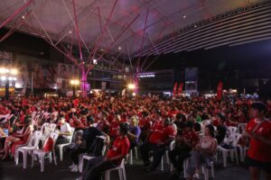 บรรยากาศภายในงาน คึกคัก สนุกสนานตั้งแต่ช่วงเย็น แฟนบอลของทุก ๆ ทีม ต่างพร้อมใจกันเดินทางมาถึงตั้งแต่แดดร่มลมตก เพื่อมาร่วมลุ้นของรางวัลมากมายจากกิจกรรมต่าง ๆ ที่เกิดขึ้นภายในงาน และทุกคนต่างเตรียมเสียงเชียร์ทีมโปรดของตัวเองกันมาอย่างเต็มที่