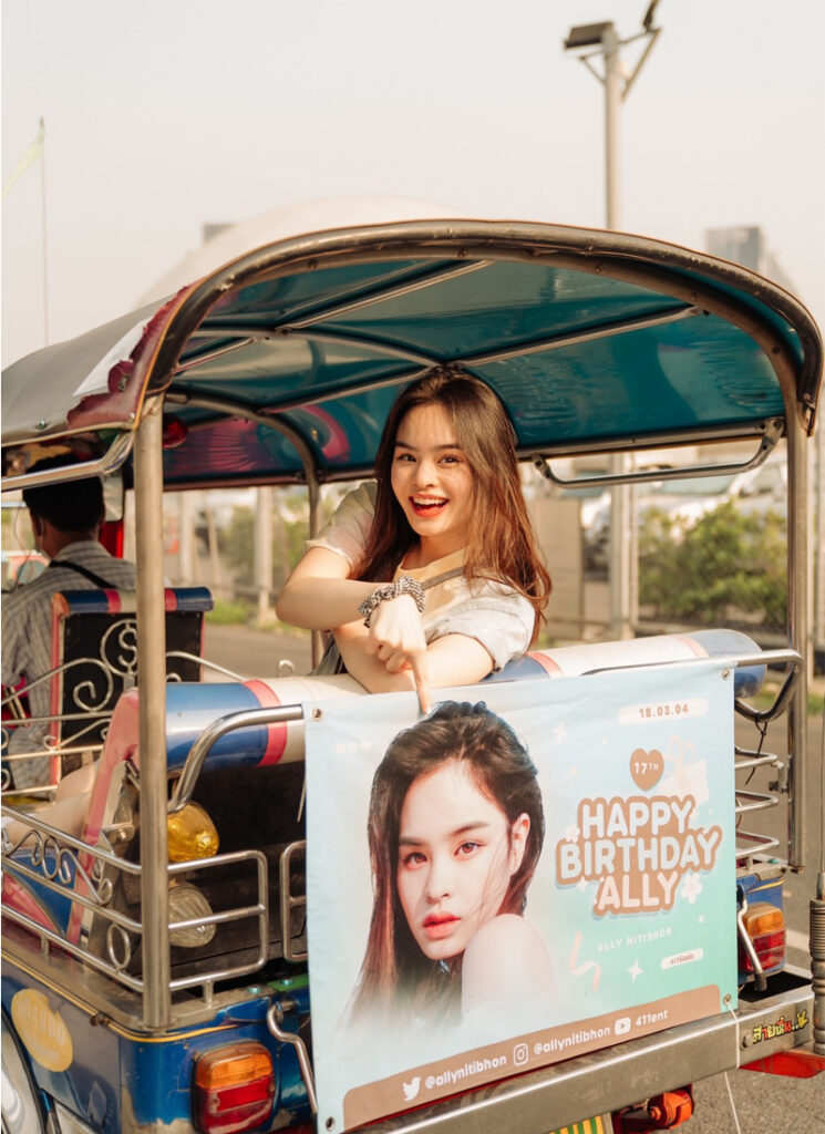 นอกจากจะพาน้องแอลลี่นั่งตุ๊กๆ แห่รอบเมืองแล้ว เหล่าแฟนคลับยังเล่นใหญ่ไฟกะพริบขึ้นไปอีกด้วยการทุ่มทุนสร้างพา แอลลี่ ขึ้นจอโฆษณาใหญ่ยักษ์ MBK MEGA LED บริเวณหน้าศูนย์การค้ามาบุญครองเซ็นเตอร์ แสดงพลังรักทะลุจอกันไปเลย รวมทั้งมีการจัด คาเฟ่น้องแอลลี่ ที่ร้าน Tickled Pink คาเฟ่สีชมพู หวานๆ สุดคิวต์ ณ Lido Connect สยามสเเควร์ ซอย 3 ในวันที่ 18 มีนาคม 2564 ซึ่งเป็นสถานที่ให้แฟนๆ มาถ่ายภาพและรับของแจก-ของที่ระลึกต่างๆ จากชาวโอนลี่ที่พร้อมใจกันทำขึ้นเพื่อโอกาสพิเศษวันเกิดของแอลลี่ในปี 2021 นั่นเอง เท่านั้นยังไม่พอแฮชแท็ก #17ยังแอ๋ว ที่แฟนๆ คิดขึ้นเพื่อส่งคำอวยพรจากใจแฟนๆ ถึง #แอลลี่ ยังพุ่งทยานขึ้นสู่อันดับ 5 ไทยแลนด์เทรนด์บนทวิตเตอร์อีกด้วย งานนี้เจ้าตัวรู้สึกปลื้มใจจนออกมาขอบคุณเหล่าแฟนคลับด้วยตัวเองทางอินสตาแกรมว่า “thank you for making today so special ♡´・ᴗ・`♡” พร้อมอัปเดตภาพร่วมกับเค้กวันเกิด 18 มีนาคม ชนิดที่เรียกว่าน่ารักเกินต้านจริงๆ