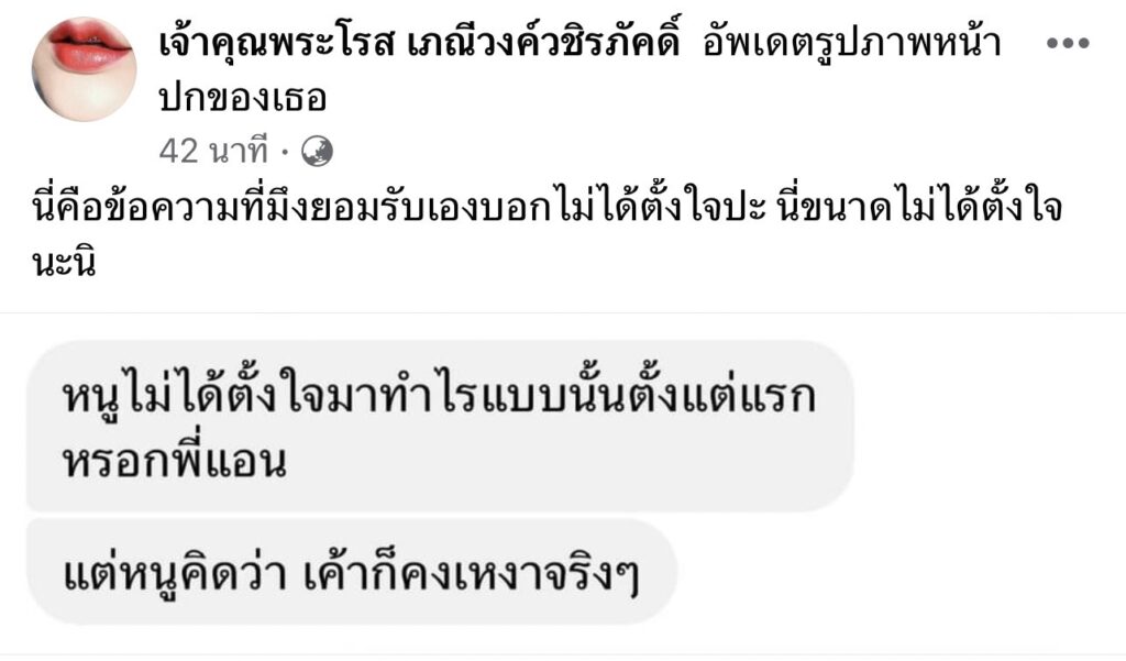 ล่าสุดทางด้านเพจดังออกมาปล่อยทีเด็ดไม่ต้องเพิ่งน้ำจิ้มกันเลยทีเดียว โดยออกมาโพสต์แชทที่คุยกัน พร้อมเขียนข้อความว่า”ค่ะน้องเบียร์ถ้ามาได้ทำแล้วขอโทษทำไมคะ แชทอีเบียร์กับน้องแอน (หญิงขายถั่วข้าวถนนกับเจ้าหญิง)” และอีกโพสต์ว่า”นี่คือข้อความที่มึงยอมรับเองบอกไม่ได้ตั้งใจปะ นี่ขนาดไม่ได้ตั้งใจนะนิ”