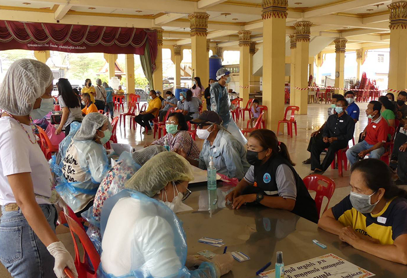 บรรยากาศตั้งแต่ช่วงเช้ามีประชาชนมาเข้าคิวเพื่อรับการตรวจคัดกรองด้วยการเจาะเลือดโดยใช้อุปกรณ์ชุดตรวจแรบบิทเทส ปัจจุบันสถิติการติดเชื้อภายในจังหวัดปทุมธานีมีผู้ป่วยสะสมจำนวน 672 ราย โดยรักษาหายแล้วจำนวน 534 ราย อยู่ระหว่างการรักษา จำนวน 137 ราย และมีผู้เสียชีวิต 1 ราย จึงมีความจำเป็นจะต้องมีการจัดทีมลงพื้นที่ตรวจในพื้นที่เพื่อสร้างความมั่นใจ และเป็นการป้องกันการแพร่ระบาดแบบเป็นกลุ่มก้อน ส่วนรถฉีดพ่นละอองฝอยฆ่าเชื้อโรค ได้ฉีดพ่นรอบบริเวณวัดและชุมชนที่อยู่อาศัยของประชาชน