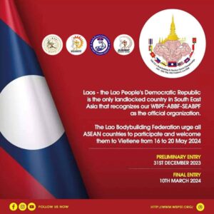 ทางสหพันธ์กีฬาเพาะกายและฟิตเนสลาวได้รับอนุญาตจากทางรัฐบาล สปป.ลาวให้จัดการแข่งขันเพาะกายระดับนานาชาติขึ้นเป็นครั้งแรกในประเทศ ในการแข่งขันกีฬาเพาะกายและฟิตเนสชิงแชมป์เอเชียตะวันออกเฉียงใต้ ครั้งที่ 18 ระหว่างวันที่ 16-20 พฤษภาคม 2567 ที่ โรงแรมดอนจันทน์พาเลส กรุงเวียงจันทนฺ์ โดยจัดให้มีการชิงชัยทั้งหมด 25 รุ่น ทั้งนี้ นายศุกรีย์ สุภาวรีกุล ในฐานะเลขาธิการสหพันธ์กีฬาเพาะกายและฟิตเนสแห่งเอเชียได้เดินทางไปสำรวจความพร้อมของทาง สปป.ลาวและได้เข้าพบท่านบัวลาน สิริปัญญา ที่ปรึกษาคณะกรรมการโอลิมปิค สปป.ลาว อดีตรองรัฐมนตรีว่าการกระทรวงศึกษาธิการและการกีฬาของ สปป.ลาวซึ่งได้มีการหารือถึงการจัดการแข่งขนกีฬาเพาะกายระดับนานาชาติขึ้นเป็นครั้งแรกใน สปป.ลาว เกี่ยวกับรายการนี้