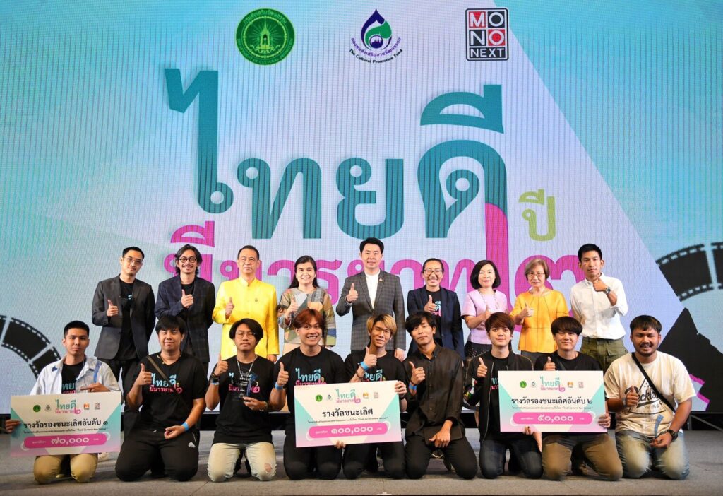 ประกาศผลเป็นที่เรียบร้อยแล้ว สำหรับ “โครงการส่งเสริมและเผยแพร่ค่านิยมและความเป็นไทย” (ไทยดี มีมารยาท ปี2) หลังจากที่ กรมส่งเสริมวัฒนธรรม, กองทุนส่งเสริมงานวัฒนธรรม และ บริษัท โมโน เน็กซ์ จำกัด (มหาชน) ได้เชิญชวนเปิดรับไอเดียสร้างสรรค์จากเยาวชน นักเรียนระดับเตรียมอุดมศึกษา นักศึกษาระดับอุดมศึกษา อายุไม่เกิน 25 ปี ร่วมส่งผลงานหนังสั้นความยาว 3-5 นาที หัวข้อ “ไทยดี มีมารยาท New Normal” เข้าประกวดเพื่อร่วมเป็นกระบอกเสียงและประพฤติตนตามหลักมารยาทในแนวปฏิบัติในสังคมไทย รวมถึงการใช้ภาษาไทยอย่างถูกต้องและเหมาะสม พร้อมทั้งเสนอเนื้อหาที่สอดคล้องกับสถานการณ์โรคระบาดโควิด-19 ซึ่งได้รับการตอบรับจากนักเรียน-นักศึกษาจากทั่วทั้งประเทศร่วมส่งผลงาน พร้อมประกาศผล ณ ลิโด้คอนเน็คท์ ชั้น 2 เธียร์เตอร์ 2 ถนนพระราม 1