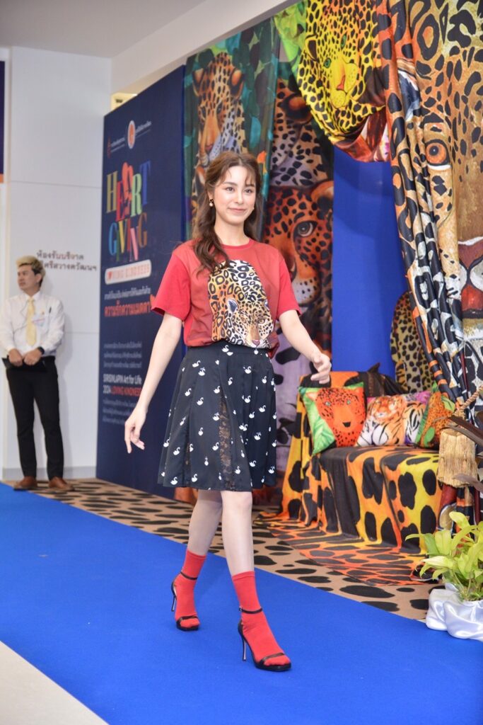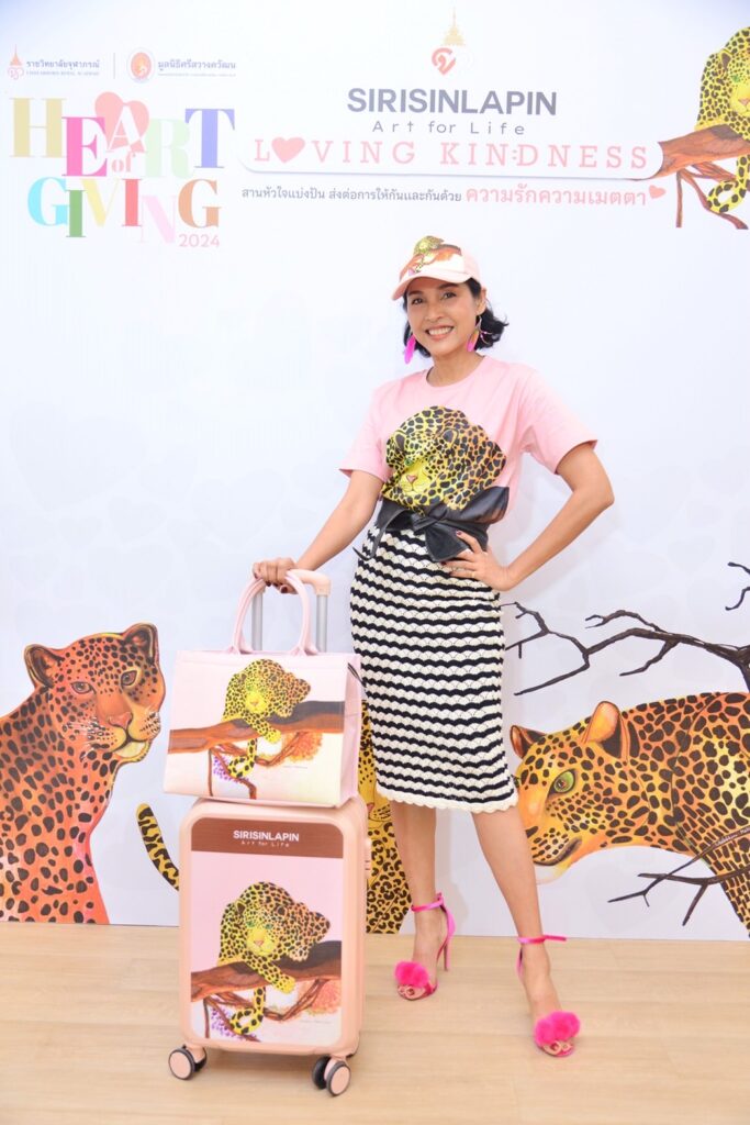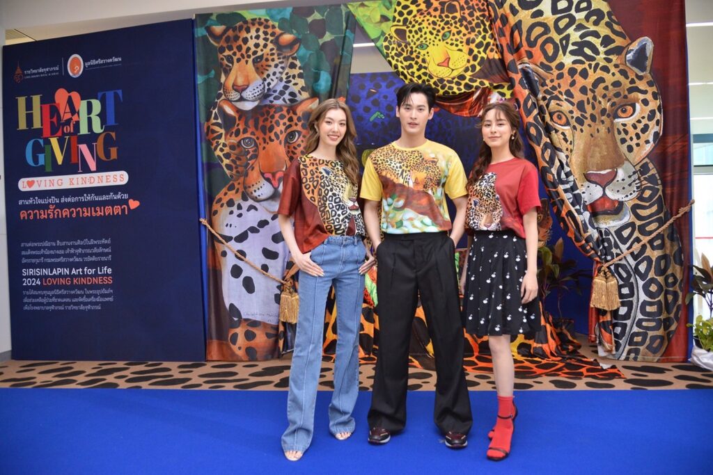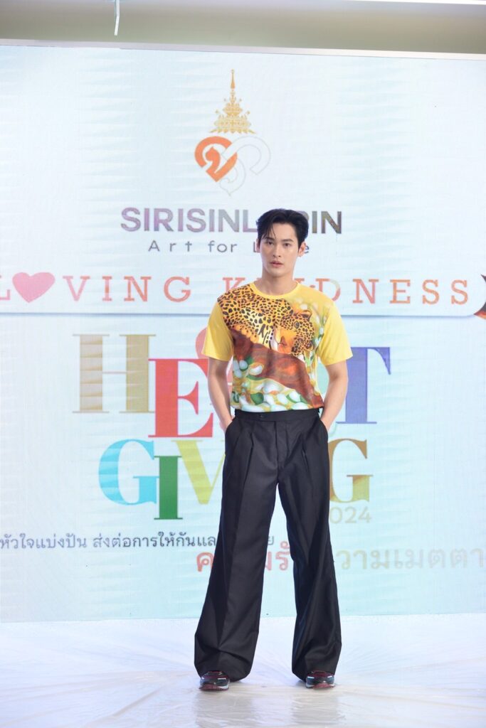 การแสดงแบบแฟชั่นโชว์การกุศล SIRISINLAPIN Art for Life 2024 LOVING KINDNESS HEART of GIVING สานหัวใจแบ่งปัน ส่งต่อการให้กันและกันด้วยความรักความเมตตา ในครั้งนี้ เป็นการนำผลิตภัณฑ์การกุศลคอลเลกชันใหม่ล่าสุดจาก 8 ลายภาพวาดฝีพระหัตถ์ “เสือ” นำมาแสดงแบบแฟชั่นโชว์โดยเหล่านักแสดงจิตกุศล นำโดย เก้า – นพเก้า เดชาพัฒนคุณ , ออม – กรณ์นภัส เศรษฐรัตนพงศ์, พีพี – ปุญญ์ปรีดี คุ้มพร้อม รอดสวาสดิ์ , หน่อย – บุษกร วงศ์พัวพันธ์, เดี่ยว – สุริยนต์ อรุณวัฒนกูล, หมอก้อง – สรวิชญ์ สุบุญ ร่วมกับแพทย์ พยาบาล และนักศึกษาจากราชวิทยาลัยจุฬาภรณ์ ที่มาร่วมถ่ายทอดความงดงามของผลิตภัณฑ์การกุศลในคอลเลกชันนี้ โดยมีผลิตภัณฑ์ อาทิ เสื้อโปโล เสื้อยืด กระเป๋าในทรงต่าง ๆ หมวก แก้วน้ำ รวมถึงบรรจุภัณฑ์บำรุงผิวกายที่รังสรรค์จากลวดลายผลงานภาพวาดฝีพระหัตถ์อันทรงคุณค่าขององค์สิริศิลปิน โดยสะท้อนเรื่องราวมุมมองชีวิตประจำวันในอิริยบทต่าง ๆ ความเกื้อกูลกันและกันระหว่างชีวิตกับธรรมชาติ ความมีเมตตาต่อกันผ่านการแสดงออกทางแววตาของเสือที่ทรงสร้างสรรค์ พร้อมเฉดสีหลากลายอันเป็นเอกลักษณ์ สร้างสุนทรียศาสตร์นำศิลป์สู่ชีวิตในทุกมิติ นำรายได้สมทบทุนมูลนิธิศรีสวางควัฒน ในพระอุปถัมภ์ ฯ เพื่อช่วยเหลือผู้ป่วยที่ขาดแคลน และจัดซื้อเครื่องมือแพทย์ เพื่อโรงพยาบาลจุฬาภรณ์ ราชวิทยาลัยจุฬาภรณ์ โดยมี ได๋ ไดอาน่า รับหน้าที่พิธีกร