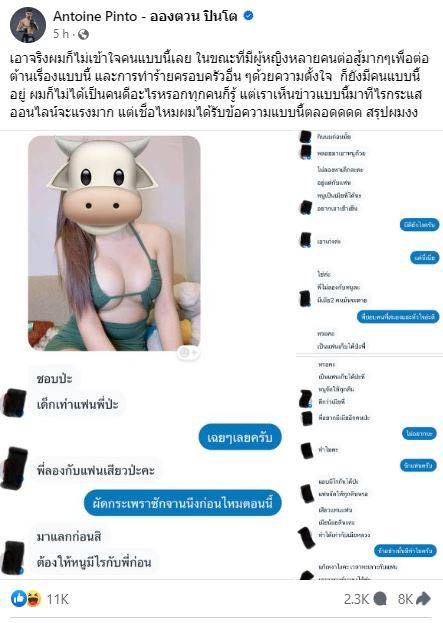 กลายเป็นประเด็นที่ชาวเน็ตเข้ามาคอมเมนต์สนั่นถึงความไม่เหมาะสมเมื่อ”อองตวน ปินโต”อดีตมวยไทย ได้ออกมาเปิดแชทที่มีสาวปริศนาได้ทักมาขอเป็นเมียน้อย โดยเจ้าตัวโพสต์ภาพพร้อมแคปชั่นว่า