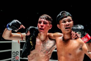 ก่อนหน้านี้ทั้งสองคนเคยพิสูจน์ฝีมือกันมาแล้วหนึ่งครั้งในไฟต์เปิดตัวของ “ซาเวียร์” ในศึก ONE ลุมพินี 14 เมื่อวันที่ 28 เม.ย.66 โดยตลอดทั้งสามยกนักสู้หนุ่มจากแดนกระทิงดุเปิดหน้าแลกอาวุธเดือดกับคู่ชกแบบสุดตัว แต่จังหวะสุดท้ายเข้าเป้าน้อยกว่า หลังจบเกมจึงเป็นฝ่าย “ก้องไกล” ที่ได้รับการชูมือชนะไปโดยคะแนนเสียงข้างมาก พร้อมรับโบนัส 350,000 บาท ไปนอนกอดทั้งคู่