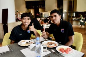มาซาทาดะ อิชิอิ เฮชโค้ชชาวญี่ปุ่นของทีมชาติไทย เผยว่า“เอเชียนคัพที่กาตาร์ ห้องอาหารของโรงแรมมีอาหารไทยซึ่งได้รับการสนับสนุนโดยสมาคมกีฬาฟุตบอลแห่งประเทศไทย ผู้เล่นและทีมงานของเราทำงานหนักและรับประทานอาหารไทยที่แสนอร่อยกันทุกวัน ขอบคุณทางสมาคมมาก”