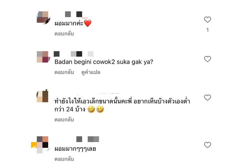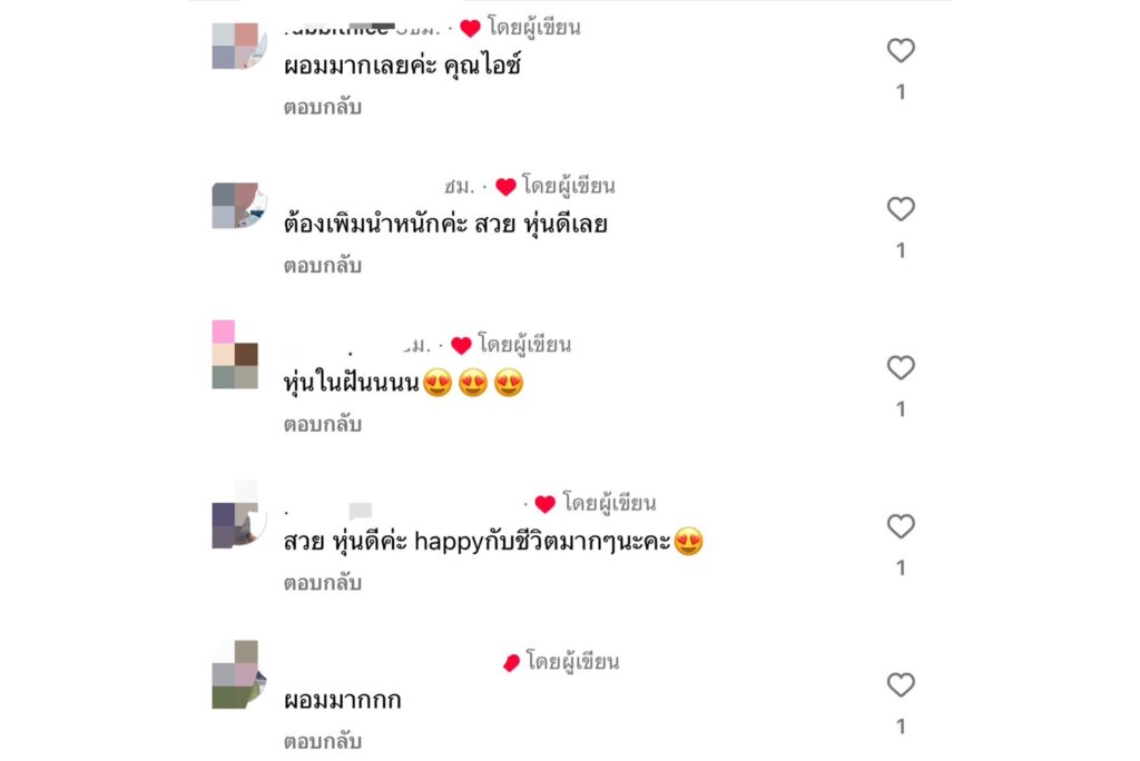 แถมยังชั่งน้ำหนักบนตราชั่งให้เห็นแบบไม่ต้องซูม พร้อมแคปชั่นว่า””31-21-34 168 -41 พอแล้วม้างงงเพื่อน น้ำหนักเท่า ป.6 เลยอะแก เอว 21 เอา 20 เลยมั้ยเพื่อน ถอดไส้แปป”ท่ามกลางชาวเน็ตเข้ามาคอมเมนต์ชื่นชมพร้อมขอเคล็ดลับการดูแล แต่ก็มีชาวเน็ตบางกลุ่มเข้ามาคอมเมนต์ติว่าเจ้าตัวผอมเกินไป