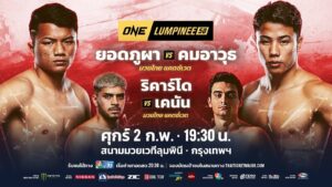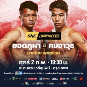 “ยอดภูผา วิมานแอร์” ดาวรุ่งกำปั้นหนัก วัย 20 ปี จากชัยภูมิ ที่ก่อนหน้านี้พลาดท่าพ่ายมา 2 ไฟต์ติด ขอระเบิดฟอร์มพิสูจน์ตัวเองด้วยการท้าชน “คมอาวุธ เอฟเอ.กรุ๊ป” อริเก่าจอมแสบ วัย 24 ปี จากหนองคาย ที่ตั้งเป้ากลับมาเก็บชัยชนะไฟต์ที่ 2 ติดต่อกันให้ได้ โดยจะประชันฝีมือกันภายใต้กติกามวยไทย แคตช์เวต 143 ป. ในฐานะคู่เอกของศึก ONE ลุมพินี 50 ที่จะถ่ายทอดสดจากเวทีลุมพินี (รามอินทรา) ในวันศุกร์ที่ 2 ก.พ.นี้