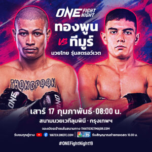 “ทองพูน พีเค.แสนชัย” นักสู้ทรงอย่างแบด วัย 26 ปี จากมหาสารคาม ขอโอกาสกลับมาพิสูจน์ตัวเองบนเวทีระดับโลกอีกครั้ง หลังโชว์ฟอร์มน่าผิดหวังในไฟต์ที่แล้ว โดยจะพบกับ “ทีมูร์ ชูอิคอฟ” มวยหมัดพลิ้ว วัย 21 ปี จากคีร์กีซสถานที่จะมาเปิดตัวเป็นครั้งแรก โดยจะวัดฝีมือกันภายใต้กติกามวยไทย รุ่นสตรอว์เวต (115 – 125 ป.) ในศึก ONE Fight Night 19: โจนาธาน vs ฟิลิปเป ถ่ายทอดสดจากสนามมวยเวทีลุมพินี (รามอินทรา) ในช่วงไพรม์ไทม์อเมริกาซึ่งตรงกับช่วงเช้าเวลา 08.00 น. ของวันเสาร์ที่ 17 ก.พ.นี้