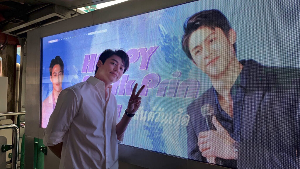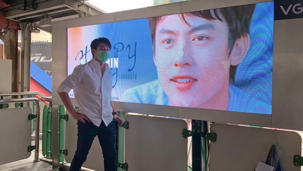 เท่านั้นไม่พอ! แม่จีนยังจัดเต็ม!! เหมาจอ LED เปิดคลิปอวยพรวันเกิดที่มีความยาว 30 วินาที วนไปทั้งวันทั้งคืน เป็นเวลานานกว่า 2 สัปดาห์ บนสถานีรถไฟฟ้า BTS 4 จุดใจกลางกรุงเทพ อาทิ สถานีสยาม 2 จอ, สถานีอโศก 1 จอ และสถานีสนามกีฬาแห่งชาติชาติ 1 จอ