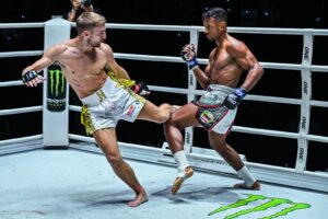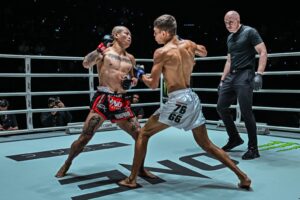 ส่วน “ทองพูน พีเค.แสนชัย” นักชกทรงอย่างแบด วัย 26 ปี จากมหาสารคาม พบกับ “ทีมูร์ ชูอิคอฟ” จอมบู๊สุดแกร่ง วัย 21 ปี จากคีร์กีซสถาน ที่มาเปิดตัวครั้งแรกใน ONE ในกติกามวยไทย รุ่นสตรอว์เวต (115 – 125 ป.)