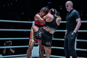 มาร์ตินา เคียร์ชินสกา ชนะทีเคโอ นัท วันเดอร์เกิร์ล นาทีที่ 1:24 ของยกที่ 2 (มวยไทย รุ่นสตรอว์เวตหญิง 115 – 125 ป.)